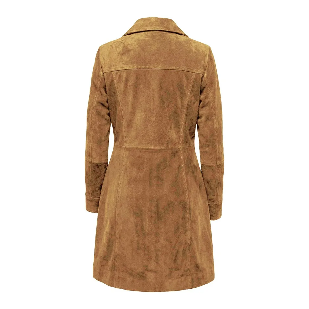 Buy Now Women’s Brown Suede Coat 3/4 Length Button Down